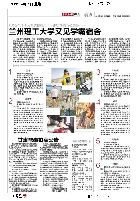 本報訊(蘭州晨報/掌上蘭州記者夏苗)隨著2019年考研成績揭曉,考入心儀院校的學子們無不歡呼雀躍,然而那些并肩同行多年,不僅自己優秀,還要幫助別人優秀,攜手一同迎接成功喜悅的學霸宿舍更是羨煞旁人。近日,蘭州理工大學生命科學與工程學院再傳喜訊,一個宿舍6名女生中5名成功考取研究生,1名順利簽約心儀單位,讓我們來看看她們是如何不負青春,描繪精彩的大學生活。