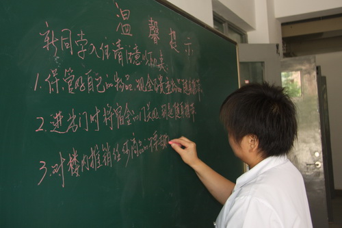 工作人員書寫新生溫馨提示