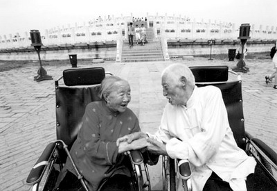 娘說:“小心點,你小心點嘛”。一生相扶持,還是老夫妻。