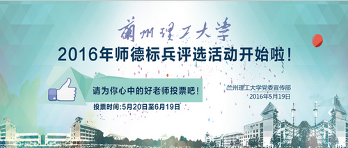 根據(jù)《 蘭州理工大學(xué)師德標(biāo)兵評(píng)選實(shí)施辦法》,為進(jìn)一步弘揚(yáng)崇高的師德風(fēng)范,教育和引導(dǎo)廣大教師積極培育和踐行社會(huì)主義核心價(jià)值觀,爭(zhēng)做有理想信念、有道德情操、有扎實(shí)學(xué)識(shí)、有仁愛之心的“四有”好老師,學(xué)校開展2016年師德標(biāo)兵評(píng)選活動(dòng)。本次投票結(jié)果將作為主要參考依據(jù),提交學(xué)校評(píng)獎(jiǎng)委員會(huì)和學(xué)校黨委常委會(huì)審定,最終產(chǎn)生3-4名2016年度師德標(biāo)兵。